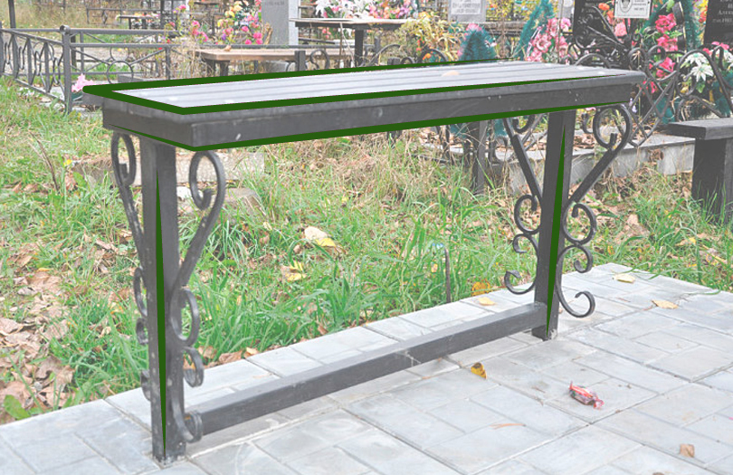 Отличительной особенностью мебели, предназначенной для установки на кладбище, является наличие длинных опор. На участке заливают специальное основание из бетона, куда впоследствии монтируют стрежни. Такой способ позволяет надежно закрепить предметы на участке, чтобы родные усопшего не волновались об их сохранности.