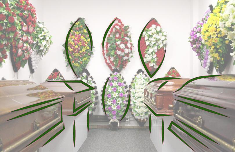 - Гирлянды в гроб. Выполняют эстетическую роль – чтобы лик умершего запомнился скорбящим в обрамлении соцветий.