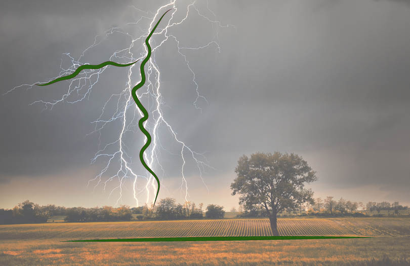 Поражения от такого удара для человека становятся фатальными – разряд молнии приводит к моментальной остановке дыхания и сердечного ритма. В месте, где молния вошла в тело, образуются характерные отметины – древовидные рубцы, которые также называют фигурами Линтенберга. Они остаются заметными на коже около 1-2 дней после происшествия.